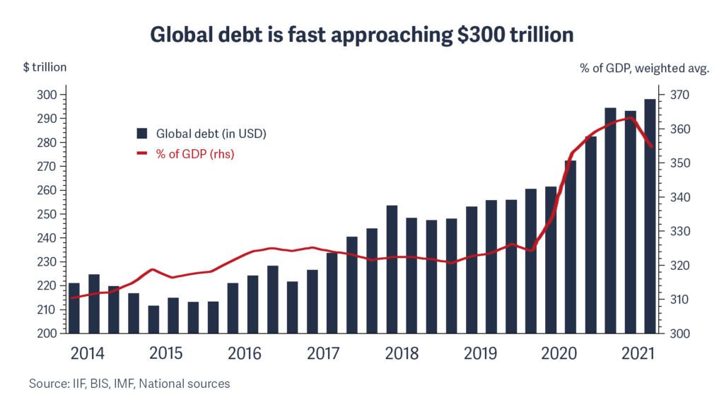 It hit U$10trn in 2008 (just as the financial crisis was kicking off) and then rose at a frenetic pace to U$20trn in mid-2017…before going parabolic due to the pandemic.