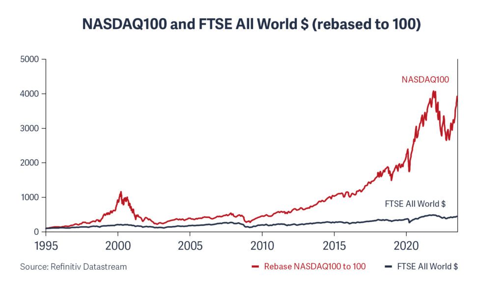 Which helps to explain why the Nasdaq index has outperformed most other markets over the past 20-30 years.